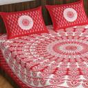 Leo Creation Cotton Double Bed Spread (Red, White)