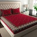 Leo Creation Cotton Double Flat 144 TC Jaipuri Prints Bedsheet (Pack of 1, Red, Green, Mustard, Black)