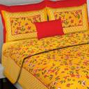 Leo Creation Cotton Double Flat 144 TC Jaipuri Prints Bedsheet (Pack of 1, Yellow, Orange, Black, Red, Green, Dark Green)