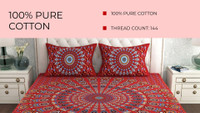 Leo Creation Cotton Double Flat 144 TC Jaipuri Prints Bedsheet (Pack of 1, Red, Yellow, Blue, Black, Mustard)