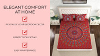 Sporting ethnic prints, this set adds a touch of traditional flair to your bedroom decor. The flat design ensures it fits snugly on your mattress, while the double size provides ample coverage for larger beds. So, it enhances the visual appeal of your bed, creating a harmonious and stylish look. It also includes pillow covers for easy mixing and matching.