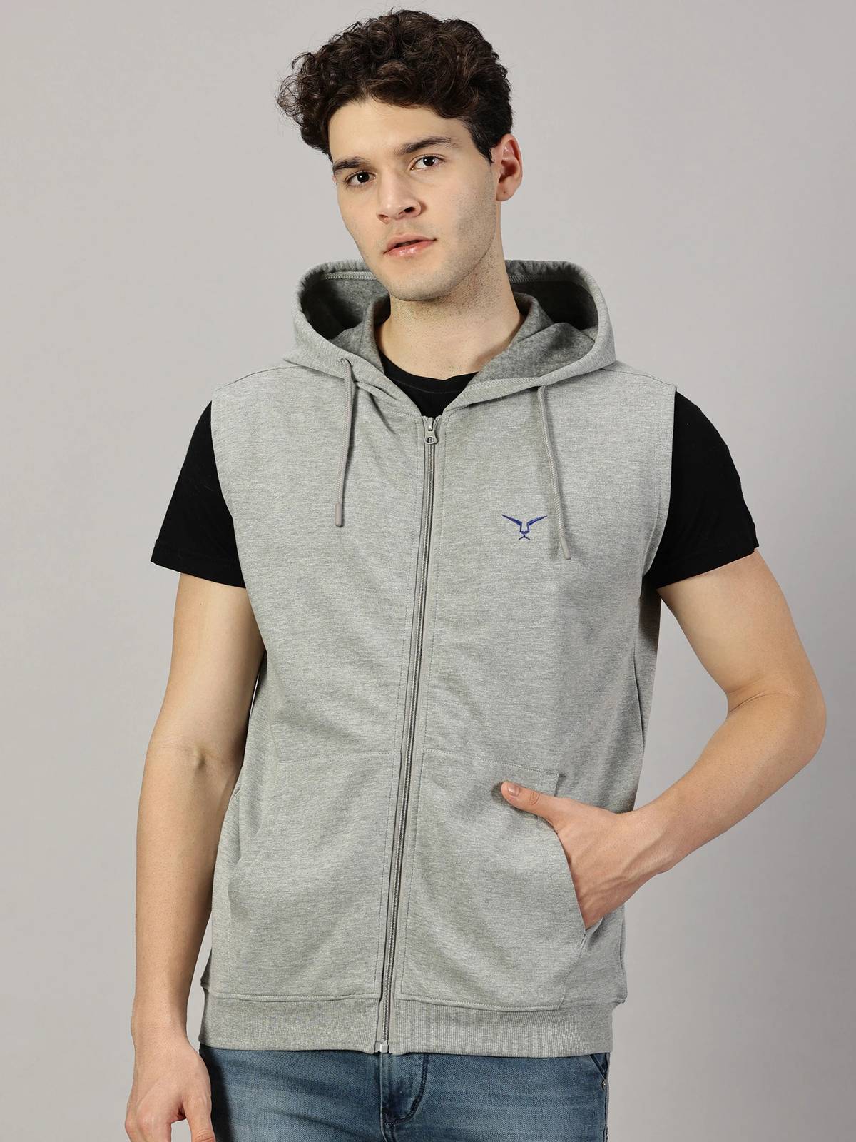 Leon Men Sleeveless Solid Hooded Sweatshirt