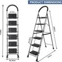 LEOPAX 6 Step Ladder for Home with Safety-Clutch & Wide Anti Skid Steps Stool Foldable Steel Ladder (With Platform, Hand Rail)