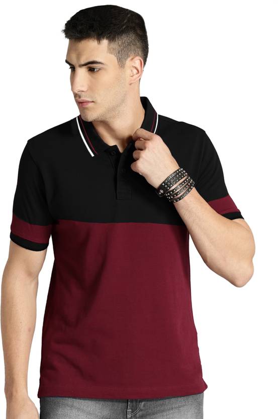 Leotude Colorblock Men Polo Neck Maroon T-Shirt