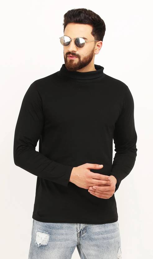 Leotude Solid Men High Neck Black T-Shirt