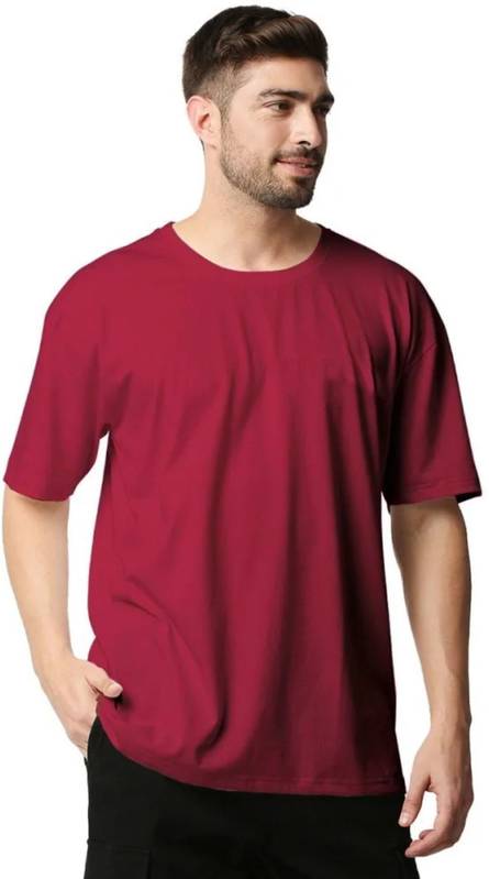 Leotude Solid Men Round Neck Maroon T-Shirt