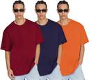 Pack of 3 Men Solid Round Neck Cotton Blend Multicolor T-Shirt