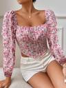 Leoty Casual Floral Print Women White, Dark Green, Pink Top