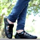 LEPASO brings you this stylish & trendy pair of roman style strappy sandals . Closure type of the shoe is slip-on secured by velcro strap, the outer material of the shoe is high quality pu, extra cushioned foot bed and out sole is made of TPR. These durable men sandals are made by hand and feature a sleek, classic and ultra comfort design. Sum up the ultimate look with this pair of men's sandals by LEPASO. These sandals add zing to your overall style when you are out with friends. Team up this pair with a t-shirt and slim-fit denims for a dashing look.
