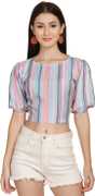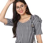 We offers all kinds of tops for both women and girls - tops for women under 500, tops for girls new fashion western, women tops, top for girls, top for women western wear, tops for women casual, top for womens new style, top girls stylish fashion, tops for women western. Top Style: Colour blocked top with ruffles on bodice and ruffled bell sleeves. Fabric Style: Slab Cotton fabric. Styling Tip: Can be be styled both as a formal work outfit and a playful party outfit.. Garment Fit: Garment is made with relaxed fit. Model Model is height 5'7"" with bust 38 and is wearing size M.. Fabric Type: Garment is made of viscose Cotton, which is 100% natural fabric that is suitable for all weather. Wash Care: First Wash Dry Clean, thereafter Hand wash