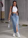 Introducing our quality denim skirt, meticulously crafted from high-quality denim fabric, ensuring comfort and durability for everyday wear while maintaining its chic appeal. Effortlessly elevate your fashion game with this denim skirt for women, seamlessly pairing with blouses, sweaters, or tees for a chic and put-together look, making it a versatile addition to your wardrobe. Capturing an ageless aesthetic, this long denim pencil skirt is suitable for both women and girls, serving as a timeless wardrobe essential that transcends generations, ensuring enduring style and versatility. Embrace the classic denim aesthetic with this skirt, exuding a timeless vibe that provides a versatile canvas for expressing your personal style through various tops, shoes, and accessories, ensuring endless outfit possibilities.