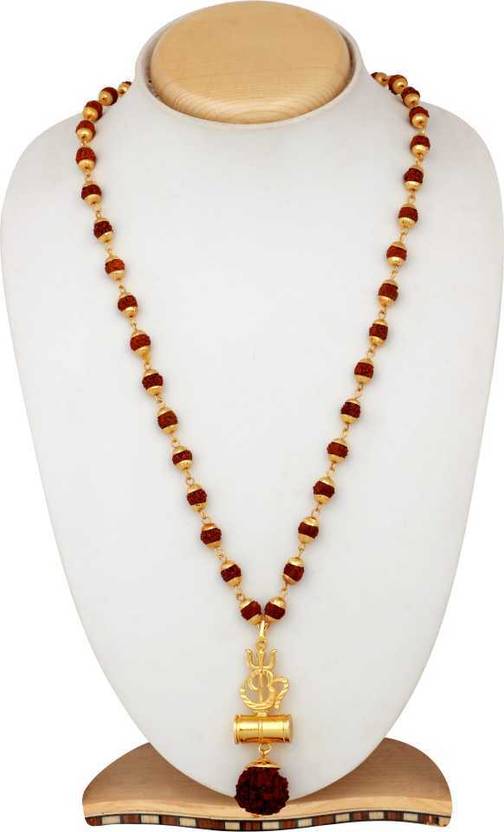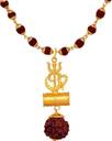 LETNIX OM Trishul and Shiva Damru Pendant with 24 Inch Rudraksh Mala Gold-plated Alloy Pendant Gold-plated Plated Brass Chain