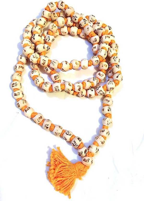 LETNIX Original Hare Krishan Hare Ram Mala 108 Beads (10 mm to 12 MM) with Certificate for Women & Men Daily Wear or Japa Mala Moonstone Platinum Plated Bronze Chain Wood Chain
