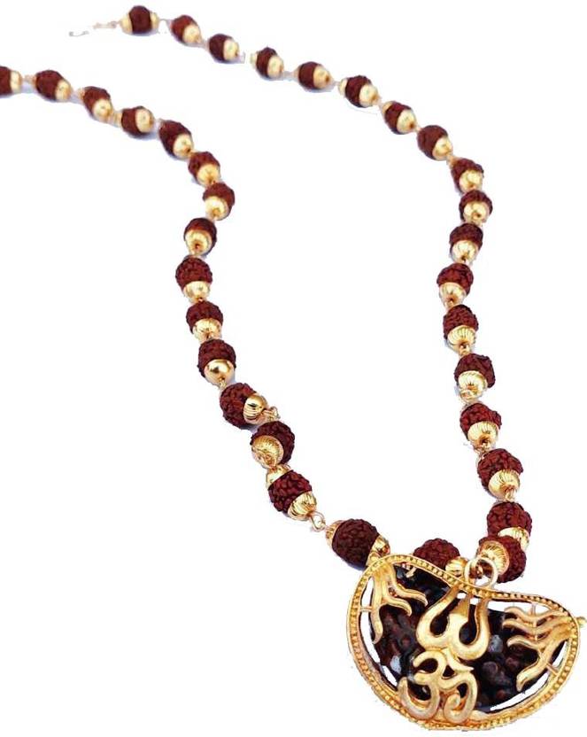 LETNIX Religious Jewellery Rudraksha Cap Mala With Ohm Trishul Locket Ek Mukhi Gold-plated Plated Brass, Wood Chain