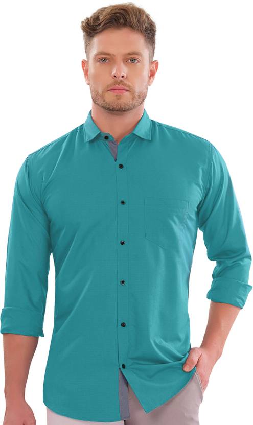 LettBaoΒ Men Regular Fit Solid Spread Collar Casual Shirt