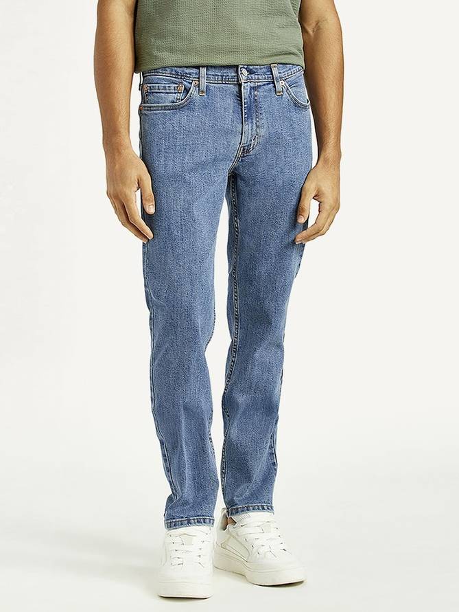 Dial up the casual charm with these effortlessly stylish blue jeans from Levis. The slim silhouette of these men's jeans is flattering, while the mid-rise waist ensures day-long comfort.