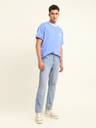 1. These jeans sit at waist with a slim fit from hip to ankle.