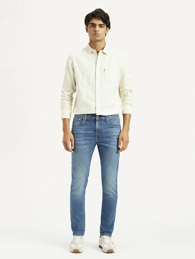 Effortlessly cool and undeniably comfortable, these Levi's blue jeans are made for laid-back days. With a slim silhouette and mid-rise waist, these men's jeans lend a tailored look.