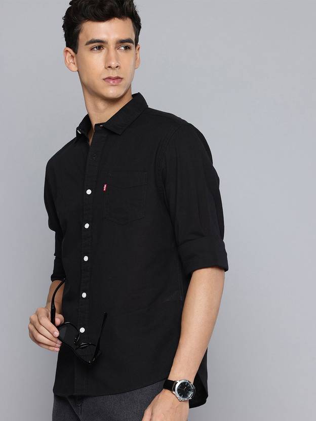 Easy to throw on and hard to miss, this Levis solid black shirt earns its spot in your weekend lineup. A slim fit and breathable cotton material make this men's shirt comfy to wear.