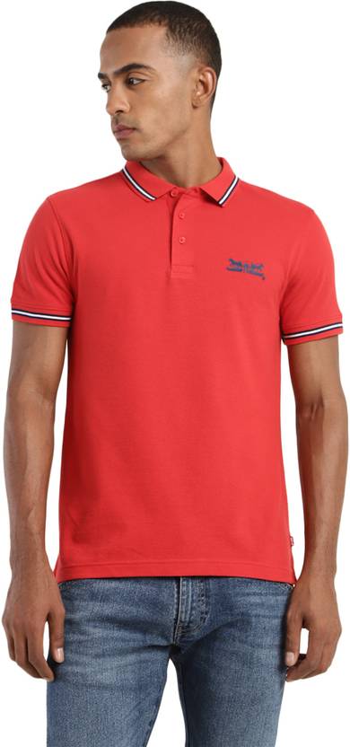 LEVI'S Solid Men Polo Neck Red T-Shirt