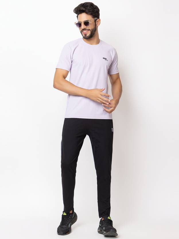 LEXON Men Solid Round Neck Polyester Purple T-Shirt