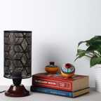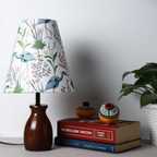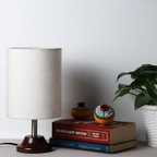 Lexton Stylish Wooden Base Table Lamp | Round Shade | Corded | Bulb Not Included Table Lamp (29 cm, White, Brown)