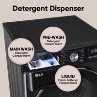 The EZ Dispenser holds powdered detergent, liquid detergent, and fabric softener, releasing the right amount automatically for each wash. This avoids wastage and ensures optimum cleaning results.