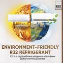 Equipped with eco-friendly R32 refrigerant, this AC ensures effective cooling while reducing environmental impact and supporting responsible energy use.