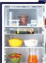 This refrigerator includes a special lattice-style box cover that regulates moisture by collecting any moisture from food that evaporates and then condenses on it.