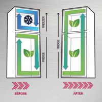 Airflow is provided to the front of the fridge which results in enhanced cooling in the door area.