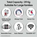 LG 9 Kg Dual Inverter Heat Pump, Wi-Fi, EcoHybrid, Allergy Care, Smart Pairing & Auto Cleaning Condenser Dryer Grey, Black (DHV09SAM)