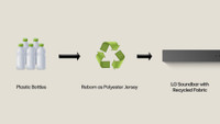 All LG Soundbars are thoughtfully designed with careful consideration to ensure a high percentage of reclaimed materials. The Global Recycled Standard certifies that the polyester jersey fabric is made from plastic bottles.