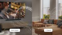The LG Soundbar converts basic 2-channel audio into multi-channel audio for deep sound that resonates through your space.