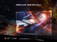 Sporting sRGB 95% (Typ.) and HDR10 support, this monitor offers a realistic visual immersion with vibrant colours and enhanced contrast. Owing to its ability to faithfully reproduce the dramatic colours intended by game developers, this monitor brings every battlefield to life.