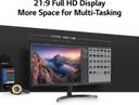 Thanks to this monitor’s 21:9 UltraWide Full HD screen, you can run multiple windows and view thumbnails effortlessly without using the Alt+Tab function. You can view large materials and more attendees at the webinars you host, thereby increasing your productivity while allowing you to multitask effortlessly.