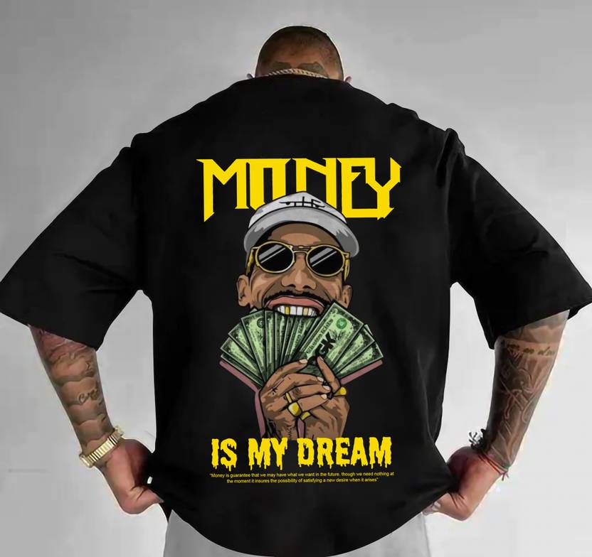 Experience the perfect blend of comfort and style with our "Money is My Dream" loose t-shirt, a true statement piece that redefines casual elegance. This t-shirt is meticulously crafted from a premium, breathable cotton blend that not only feels soft against the skin but also drapes effortlessly over your body. The relaxed fit is designed for versatility, making it an ideal choice for a cozy day at home or a stylish outing with friends. The luxurious fabric gently caresses your skin, ensuring that you feel as fabulous as you look. With its loose silhouette, this t-shirt allows for unrestricted movement, catering to those who appreciate both fashion and functionality in their wardrobe.The eye-catching graphic emblazoned across the front of the t-shirt makes a bold statement about your aspirations, seamlessly merging a playful attitude with an air of sophistication. Featuring a contemporary font that commands attention without being overpowering, this design adds a unique flair to your outfit, making it a versatile addition to your collection. Whether you choose to pair it with tailored trousers for a chic brunch look or style it with your favorite denim for a relaxed yet fashionable ensemble, this t-shirt transcends mere clothing; it serves as a canvas for your ambitions, sparking conversations and garnering admiration wherever you go.Available in a carefully curated palette of timeless colors, this loose t-shirt is designed to effortlessly complement any wardrobe, allowing you to express your unique style with ease. Whether you opt for the classic sophistication of black, the crisp freshness of white, or a vibrant hue that reflects your personality, each option is crafted with meticulous attention to detail to ensure it maintains its shape and color, wash after wash. Elevate your everyday attire with this luxurious t-shirt that embodies a carefree spirit while making a bold statement about your dreams and aspirations. Embrace the art of casual luxury and let your clothing be a reflection of the ambitions that propel you forward, inspiring those around you to dream big and live boldly.