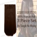 LHS -LUXURY HAIR STUDIO Human Clip in 3 Piece Set Straight 18Inch (Brown Color) For Woman Hair Extension