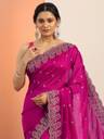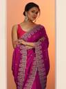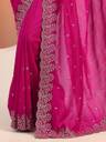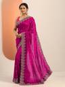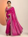 Pink zari embroidered saree with zari embellished border and a blouse piece