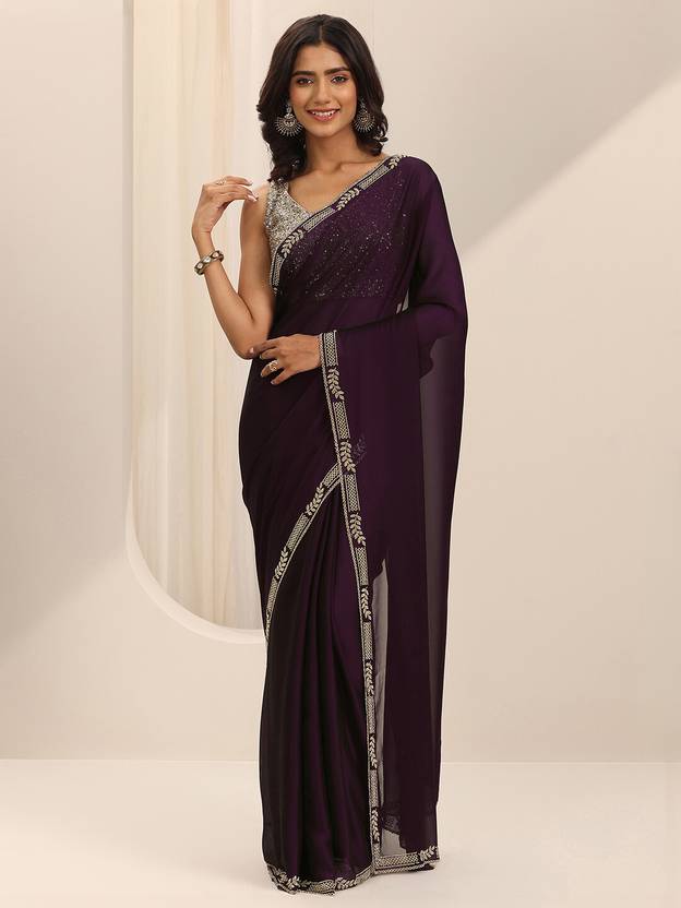 Solid/Plain Daily Wear Satin Saree (Maroon)