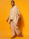 Cream viscose rayon printed kaftan and cream viscose rayon printed palazzo with both side pocket