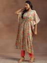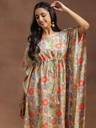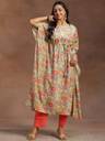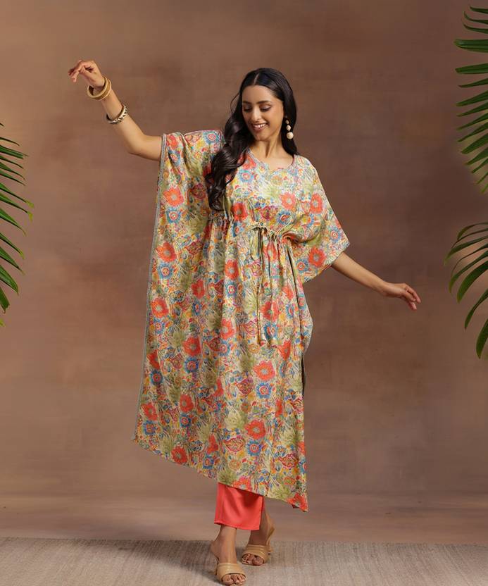 Multi color floral printed kaftan with kimono sleeves & drawstring with gotta patti & solid palazzo