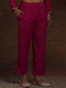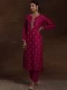 Our 3-piece pink and red suit set features a floral print, a straight-fit kurta with a notched neckline, long regular sleeves and Zari detailing. Complemented with solid trousers with a partially elasticated waistband, slip-on closure and roomy pockets, and a matching dupatta. This refreshing style is perfect for light festivities.