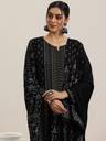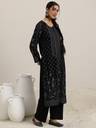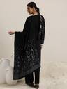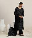 Black ethnic motif woven design straight kurta with solid trouser and floral woven design dupatta