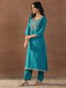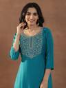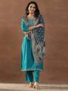 Rama floral embroidered yoke design straight kurta with solid trouser & embellished dupatta