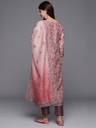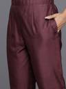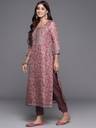 Our 3-piece mauve silk blend suit set features a floral print straight-fit kurta with a round neckline, three-quarter sleeves, and a statement yoke. Complemented with solid tone straight pants with a partially elasticated waistband and roomy pockets, and a matching dupatta. Adorned with Gota Patti accents, intricate embroidery, delicate sequins detailing, lace and fabric-trim accents, this comfortable style is ideal for casual outings.