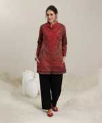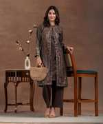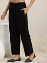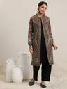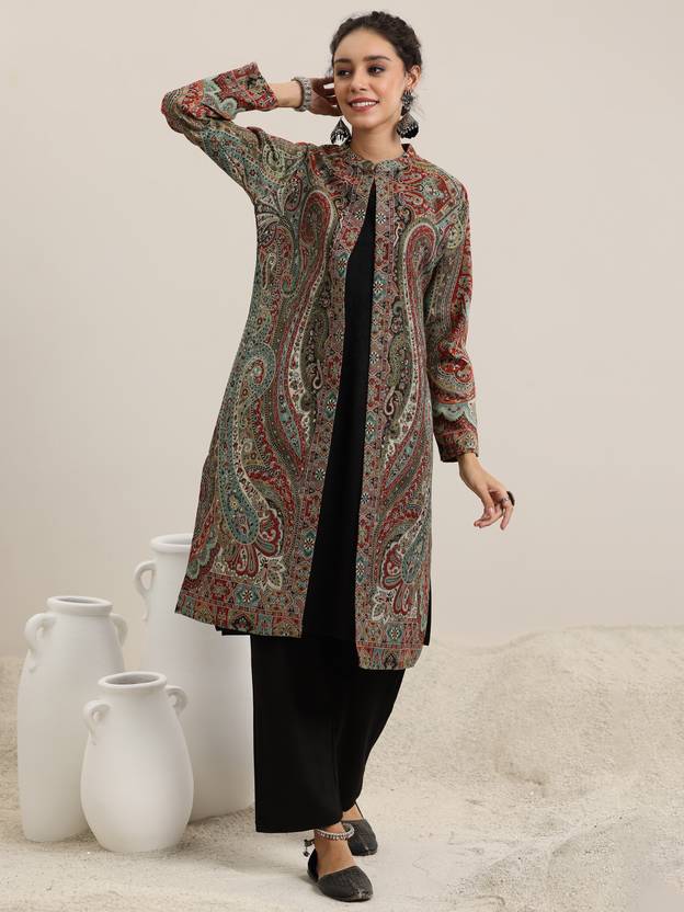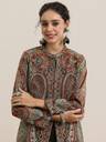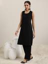 Black solid straight kurta with solid palazzo and paisley woven design jacket