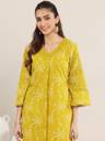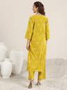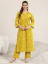 Yellow floral motif printed front pleat kurta with floral printed trouser co-ord set