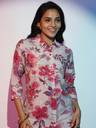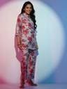 Mauve floral printed front open shirt with floral printed straight palazzo