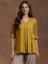LIBAS Women Woven Design Straight Kurta (Yellow)