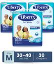 Liberty Popular Tape , Waist Size (30-40 inches), Pack of 3 Adult Diapers - M (30 Pieces)